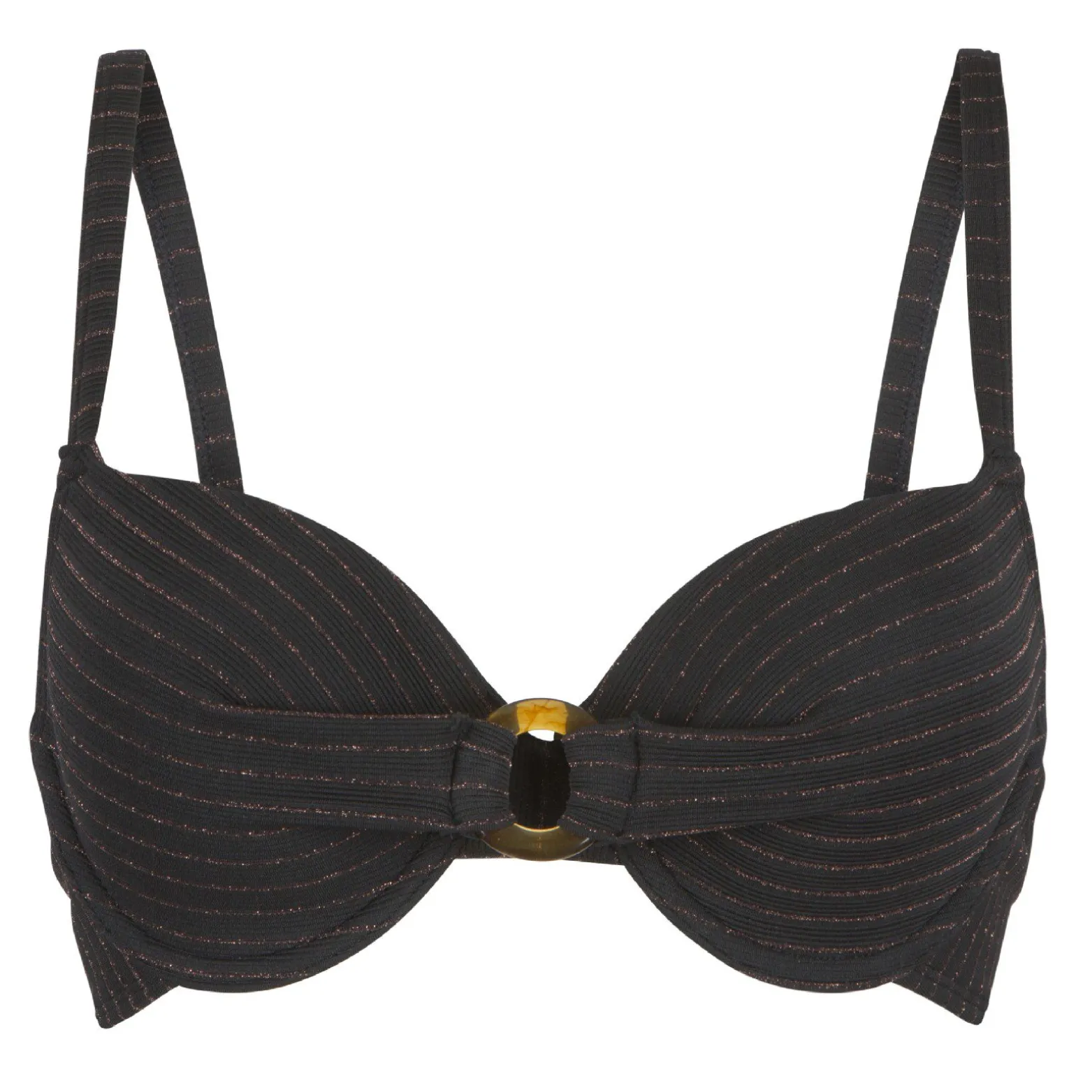 Shine like a black diamond! De zwarte kleur met het glinsterende lurex draadje geeft een luxe uitstraling. De bikini is voorgevormd, heeft verstelbare schouderbandjes en is voorzien van een beugel. Hierdoor is deze bikini ook zeer geschikt voor de grotere maten.
