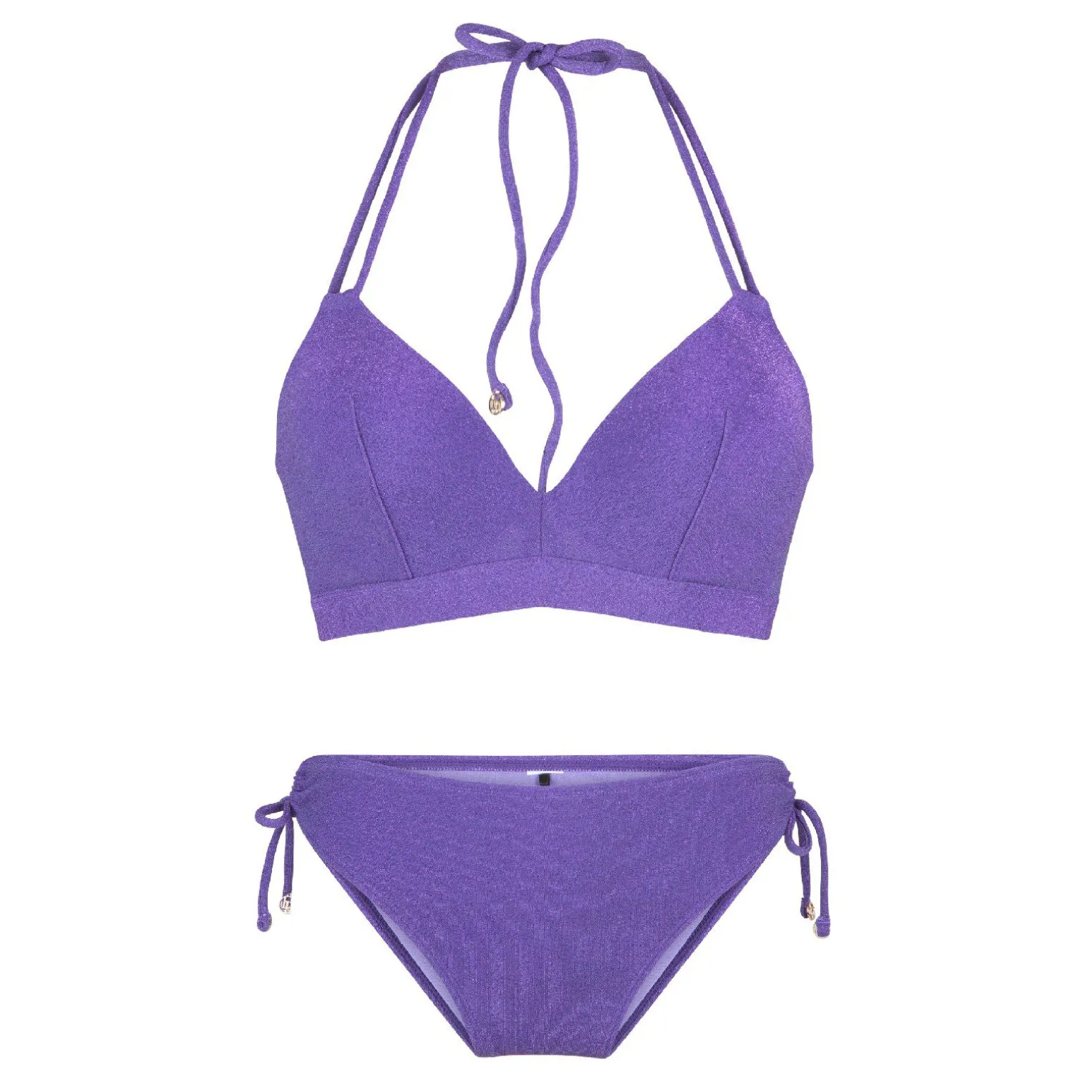 The color of wisdom and sensitivity! Deze serie laat de kracht van een violet kleur zien! Het is een unieke bikini met een triangle padded top en een broekje met strikdetails aan de zijkanten. De sparkle in de stof maakt deze serie sexy en stijlvol tegelijk!