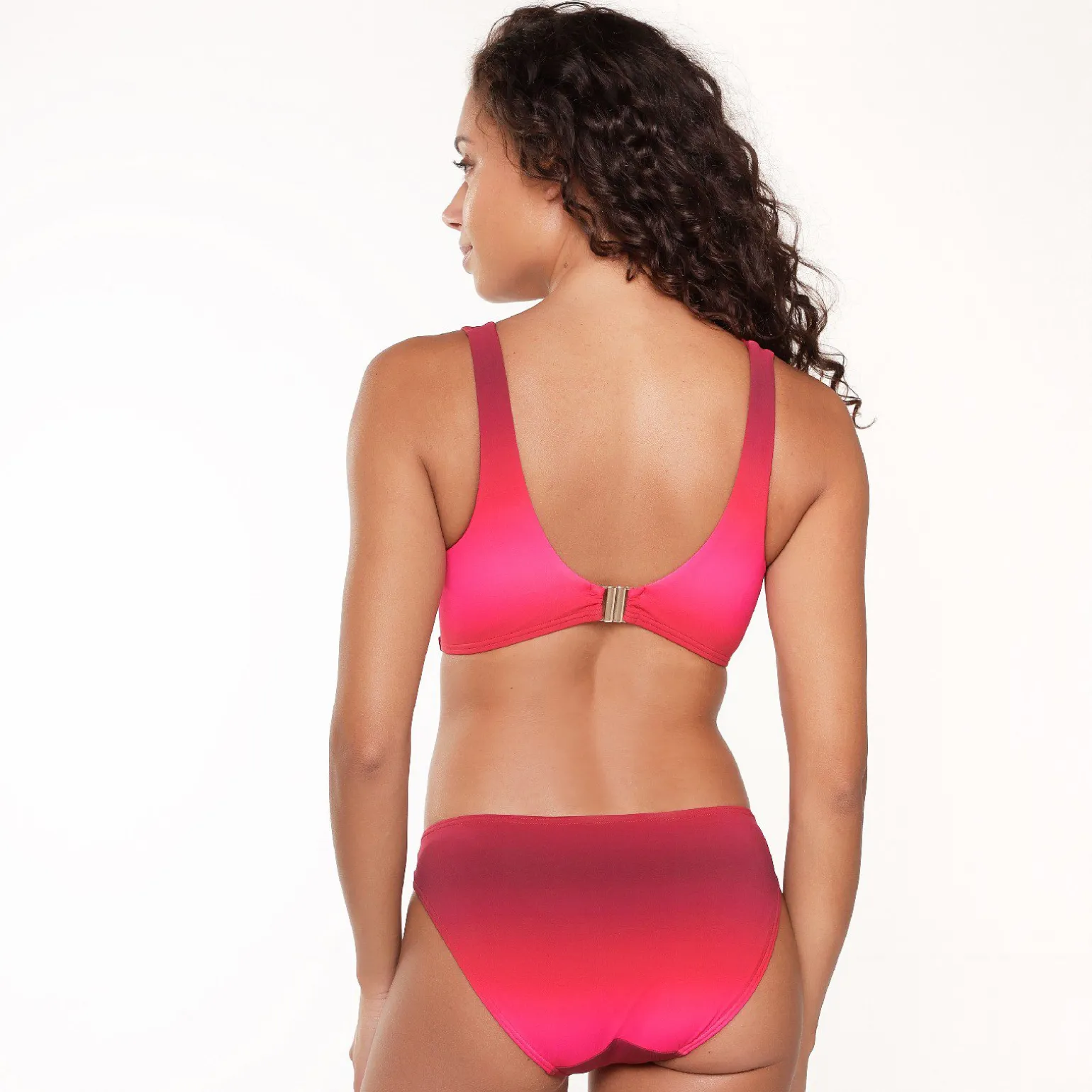 Free your mind door deze unieke tye dye style in de kleuren Orchid red & Camel lake! Deze triangel bikini top is voorgevormd en heeft een aan beide bandjes een mooi accessoire aan de bandjes